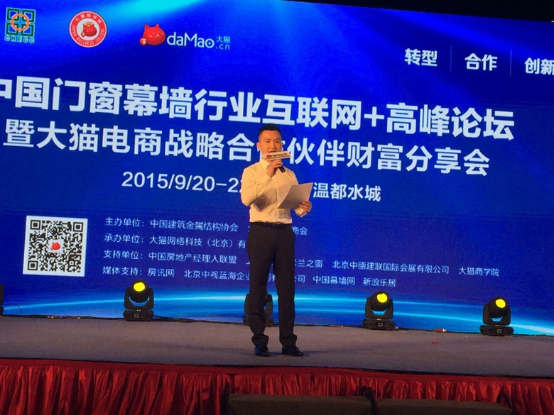 隨著全球趨勢的發(fā)展和政府的大力倡導(dǎo),互聯(lián)網(wǎng)+正如火如荼地席卷所有行業(yè)。如今電子信息化時(shí)代,互聯(lián)網(wǎng)+的發(fā)展已經(jīng)有目共睹。2015年9月20日-22日在北京溫都水城,大貓電商與中國建筑金屬結(jié)構(gòu)協(xié)會(huì)、全聯(lián)房地產(chǎn)商會(huì)共同舉辦了“2015中國門窗幕墻行業(yè)互聯(lián)網(wǎng)+時(shí)代高峰論壇暨大貓電商戰(zhàn)略合作伙伴財(cái)富分享會(huì)”。天辰股份作為合作會(huì)員單位,應(yīng)邀參加了此次論壇會(huì)。