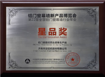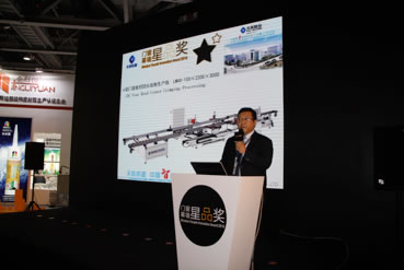 展會期間,在第二屆中國門窗幕墻年度星品評選中,天辰股份的數(shù)控四頭組角生產(chǎn)線以其填補國內(nèi)空白的先進的技術及超高生產(chǎn)效率,獲得評審及專家的一致好評,勇奪“星品獎”。天辰股份市場部傅旺經(jīng)理在星品發(fā)布會上對該設備進行了詳盡的技術闡述。