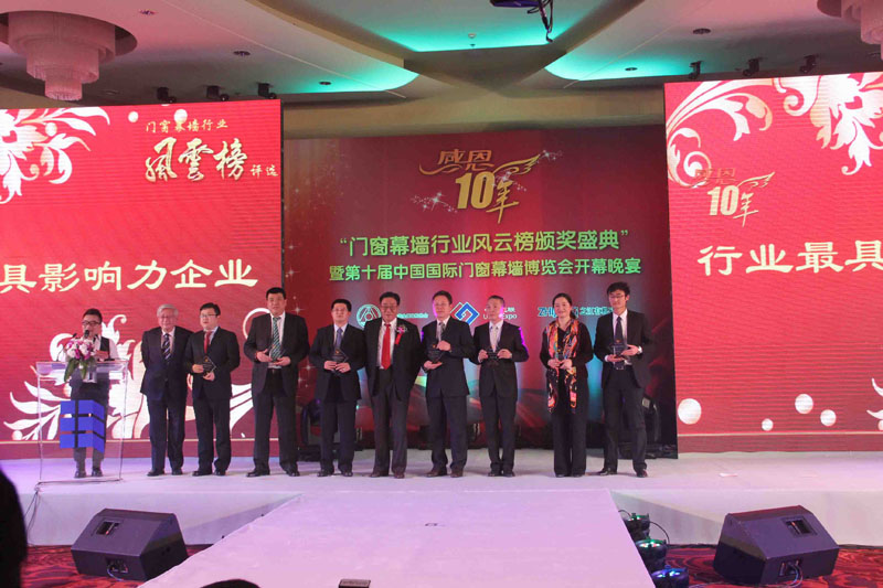 2012年11月23日,由中國建筑金屬結(jié)構(gòu)協(xié)會(huì)主辦的“感恩十年——門窗幕墻行業(yè)風(fēng)云榜評選”頒獎(jiǎng)盛典在北京舉行。經(jīng)過2個(gè)月的激烈角逐,我公司以絕對優(yōu)勢高居加工設(shè)備類榜首,榮獲一呼百應(yīng)大獎(jiǎng)——最具影響力企業(yè)獎(jiǎng)。 我公司自成立至今,始終把技術(shù)創(chuàng)