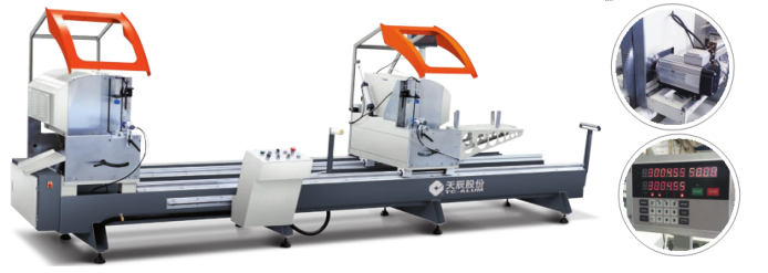 ☆?兩鋸頭即可單獨(dú)工作,也可同時(shí)工作,同時(shí)工作時(shí),能一次切出所需要的長(zhǎng)度及型材兩端角度。