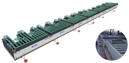 ☆?連接于組角生產(chǎn)線后端,用于組角后窗體的自動(dòng)傳輸,并可在本輸送線上完成中梃拼裝、安裝膠條、安裝五金、壓條配做,直至包裝入庫的各種工序;