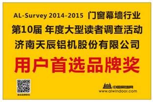 AL-Survey讀者調(diào)查活動(dòng)全稱:中國(guó)幕墻網(wǎng)年度大型讀者調(diào)查活動(dòng)暨“我最喜愛(ài)品牌”評(píng)選活動(dòng)。(以下簡(jiǎn)稱AL-Survey)我司作為設(shè)備領(lǐng)域的領(lǐng)先企業(yè),自上界獲得用戶首選品牌及市場(chǎng)表現(xiàn)獎(jiǎng)之后,2015年再次憑借“天辰鋁機(jī)”品牌在市場(chǎng)中的優(yōu)異